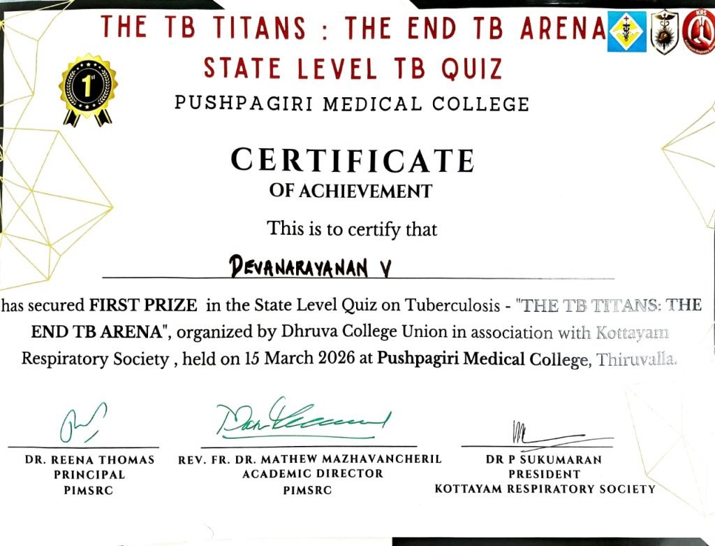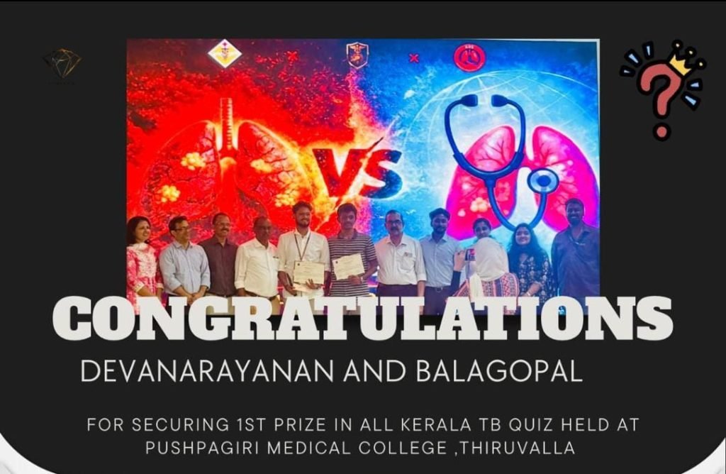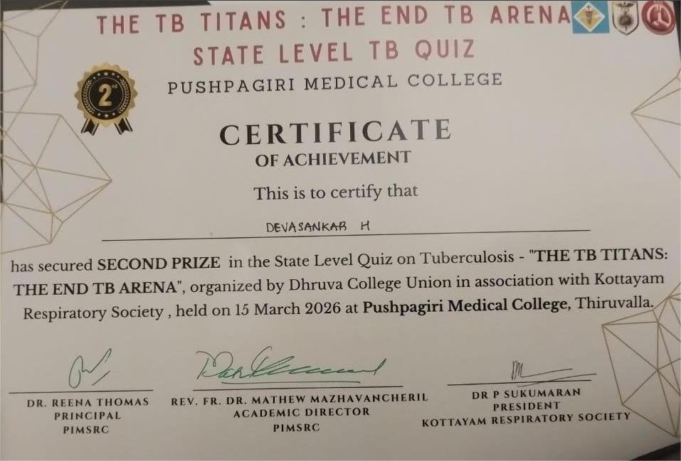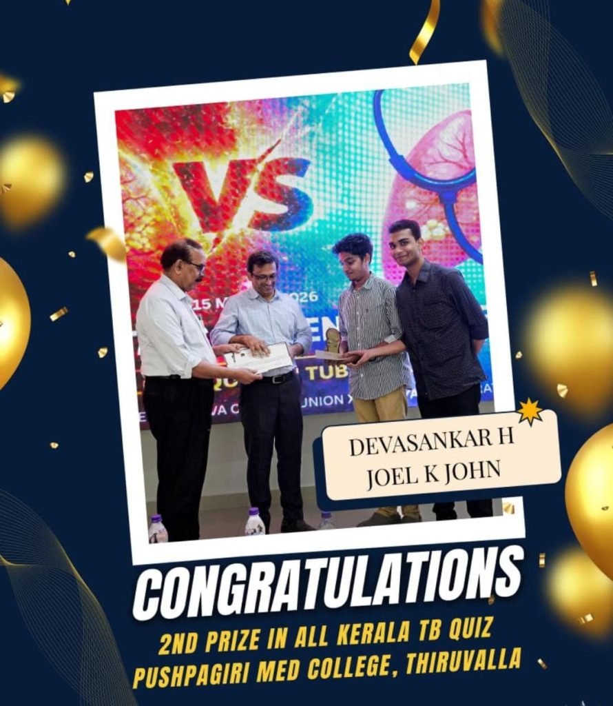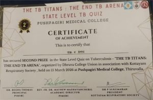 1st and 2nd prizes in All Kerala TB Quiz held at Pushpagiri Medical College on 15.03.26